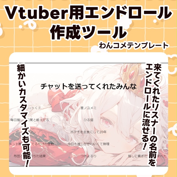 わんコメ用テンプレート。配信中にコメント等をしてくれた方をエンドロール表示してくれる。