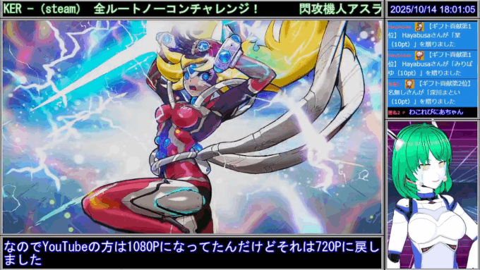 配信で(残機が複数あるゲームを)ノーミス・ノーデスクリアした動画の切り抜きです。